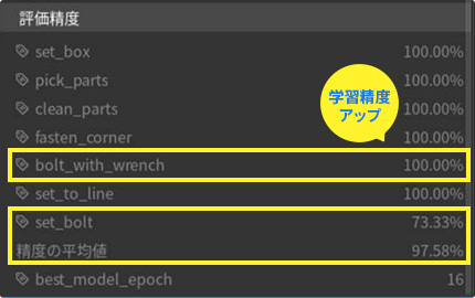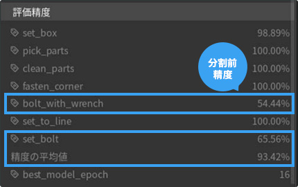 分割機能をONすることで、長いアノテーションデータの際には下記の図のように全体的な学習精度の向上を確認できます。