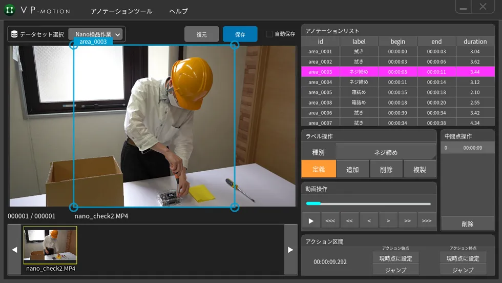 - ※1 動画内の特定の行動をラベルで定義します(1アクションにつき数分程度で設定可能)