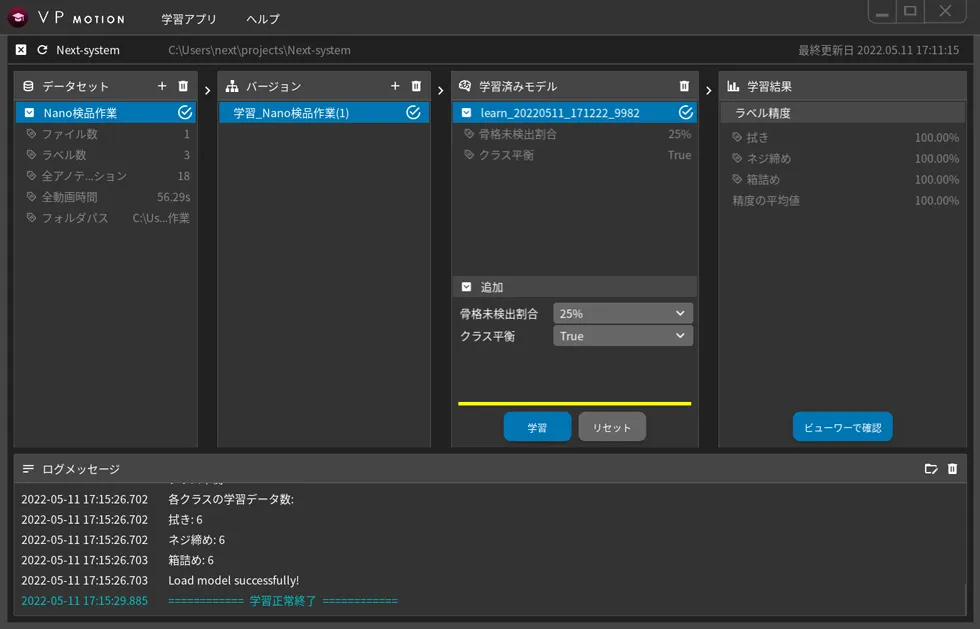 Step.2「VP-Motion Trainer」で学習済モデルを作成