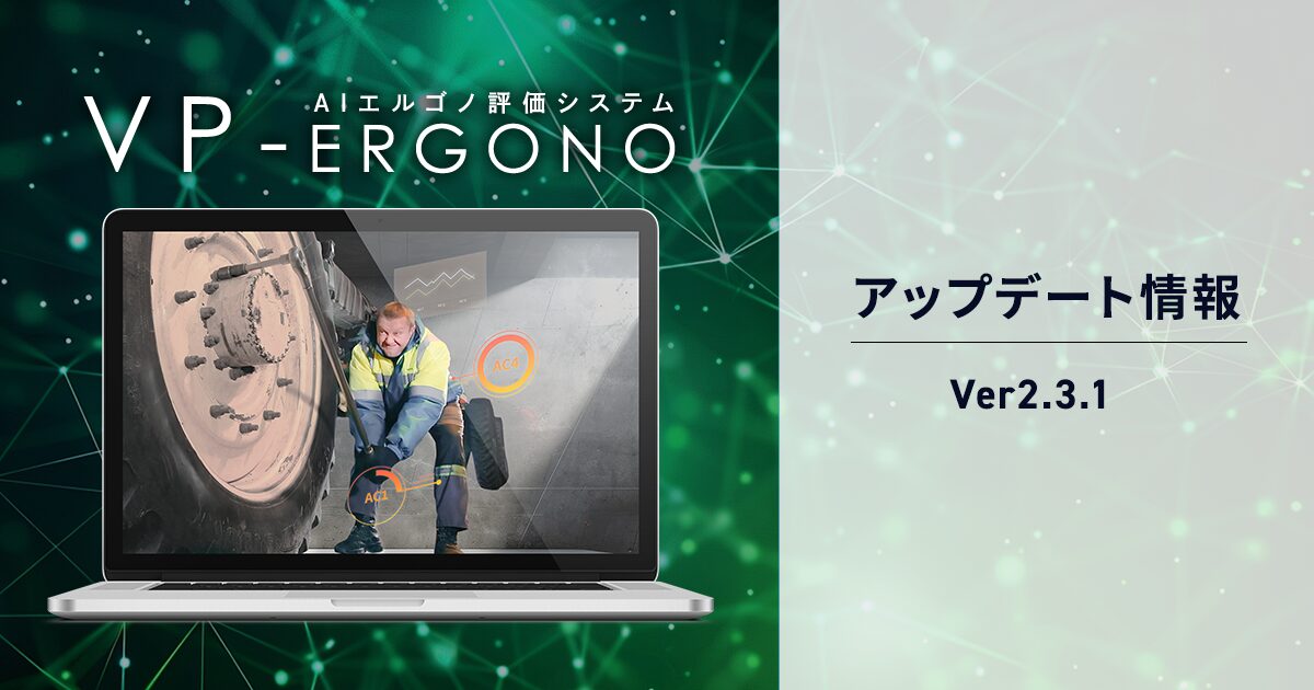 AIエルゴノ評価システム「VP-Ergono」のバージョン2.3.1をリリースしました。